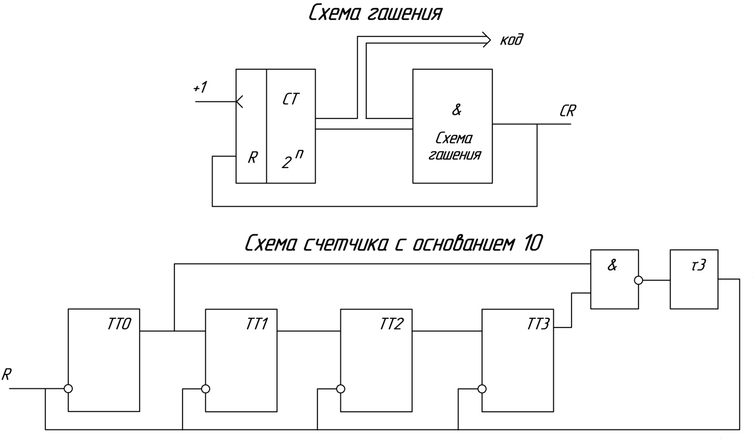 Вывод: для превращения суммирующего счетчика в вычитающий, нужно сигналы управления трактом переноса снимать с противоположных выходов триггера счетчика.