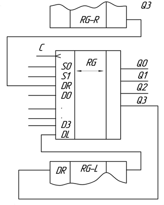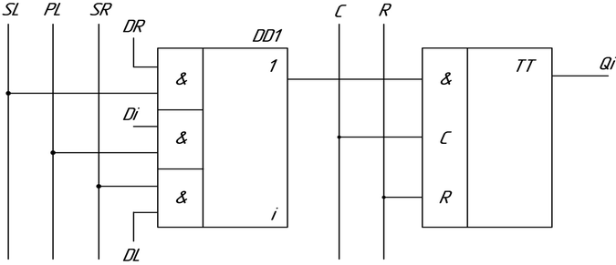 SL – сдвиг влево; PL – параллельная загрузка; SR – сдвиг вправо