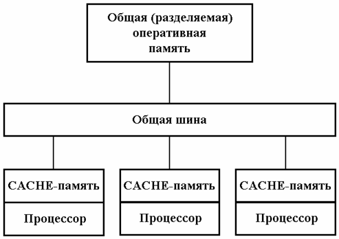 Проблема совместного доступа к памяти, синхронизации кэшей, медленного обращения к ОП, проблема масштабируемости (сложно сделать многопроцессорную систему)
