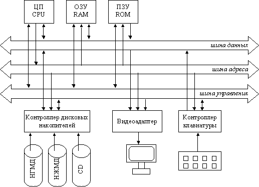 Шина – связующее звено, общее для всех компонентов, где данные пересылаются из одного устройства в другое