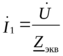 Зная эквивалентное сопротивление, определяем ток первой ветви I1.
