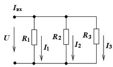 | Rэкв = R1+R2+R3 I = E/R экв U = U1+U2+U3 = R1·I + R2·I + R3·I =Rэкв∙I |