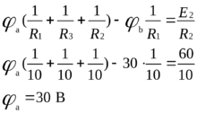 Решая систему уравнений, определяем потенциалы узлов φa и φb