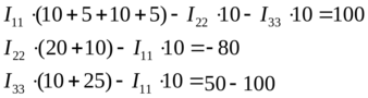 Так как три контура, то будет три контурных тока I11, I22, I33. Направления этих токов выбираем по часовой стрелке рис 3. Запишем настоящие токи через контурные: