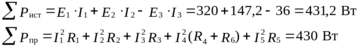 Проверим правильность расчёта токов, подставив их в уравнения по законам Кирхгофа.