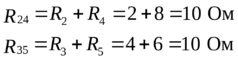 Определить эквивалентное сопротивление, если R1 = R4 = R5 = 5 Ом R3 = R2 = 10 Ом