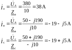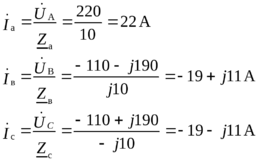 Токи в фазах определяются по закону Ома: