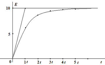 t =5 τ Uс пер5 = 10(1 -1/143,5) = 9,9 B