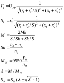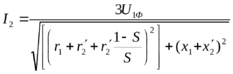 I’2=U1ф/((r1+r’2/S)2+(x1+x’2)2)