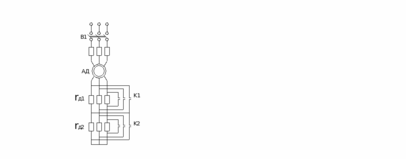 Включаем сопротивление в цепь ротора АДК2 замыкаем, шунтируем К1 замыкаем шунти- руем rg1 получаем rg2 в качестве с сопротивления