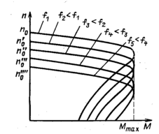 частотах сопротивление увеличивается, ток и момент уменьшается