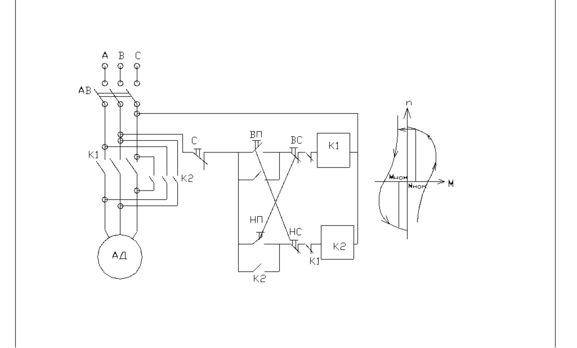 реверсивная схема управления АД.