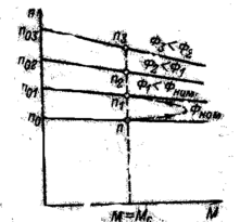 Это имеет место для двигателей постоянного тока. От n0 до 0,9nкрит можем использовать эту зависимость для АД( там где прямая линия на механич.характеристике).