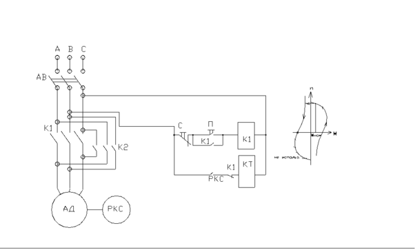 Предусмотрена блокировка c одновременного включения контактеров К1 и К2.