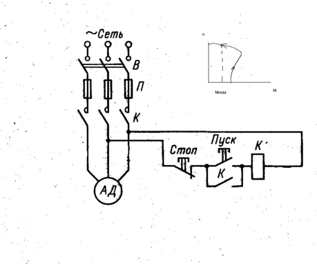 простейшая схема управления АД с КЗР.(нереверсивная).