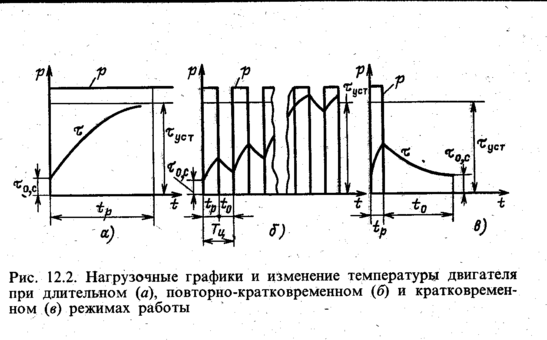 Длительный режим нагрузки. –режим, при котором двигатель за время работы нагревается до установившейся температуры и работает в этом режиме длительный режим нагрузки.