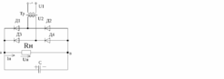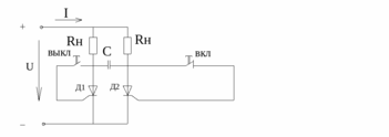 Кнопка вкл.- вкл Д1-включение по цепи +Rн -заряжается конденсатор С (+ -)