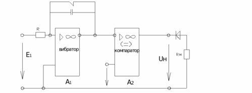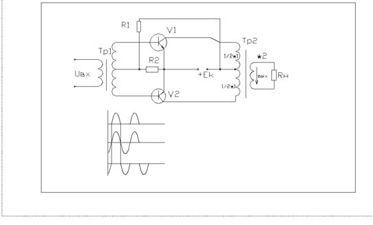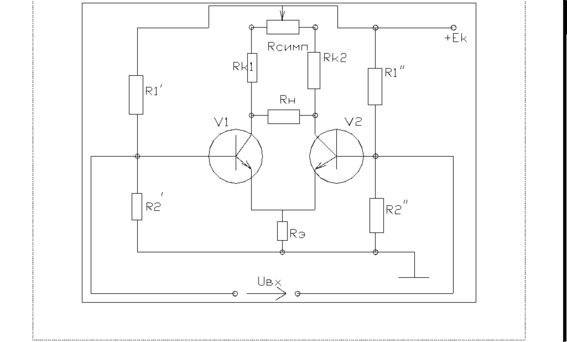 Два усилителя. Общий элемент для входа и выхода. Нет С, т.к. не пропускает слабые сигналы.