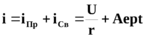 В образовавшемся при этом контуре благодаря энергии, запасенной в магнитном поле индуктивности, ток исчезает мгновенно: ЭДС самоиндукции, обусловленная убыванием магнитного потока, стремиться поддержать ток в контуре за счет энергии исчезающего магнитного поля. Принужденный ток в данном случае равен нулю, переходной ток в контуре являться свободным, постепенно приближающимся к нулю. Свободный ток удовлетворяет однородному дифференциальному уравнению: