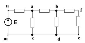 2. К зажимам разорванной ветви подключается вольтметр и измеряется ЭДС эквивалентного генератора Еэкв.