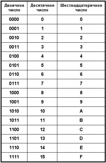3.2.2.Таблица соответствия систем счисления
