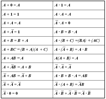 3.2.1 Правила и соотношения в алгебре логики