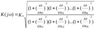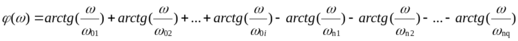 В логарифмическом масштабе выражения (4), (5), (6) можно представить отрезками прямых линий. Таким образом, в результате аппроксимации модуль частотной характеристики состоит из константы и абсолютных углов наклона прямых к оси абсцисс: 20lg10=20 дБ/дек. Изменение наклона происходит в точках излома характеристики: ω = ω0i и ω = ωnj при ω<ω0i и ω> ωnj участки АЧХ представляют собой прямые, лежащие на оси абсцисс (0 дБ). Результирующая характеристика представляет собой сумму отрезков по участкам, ограниченные точками изломов.