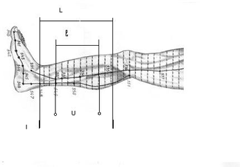 Рис.1 Тетраполярный метод РПГ. Выбираем соотношение l/L<0.6. При этом точность измерений объема крови в сегменте конечности не ниже 15%.
