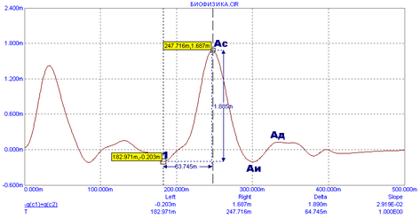 α (с) – длительность анакротической фазы. Этот параметр характеризует эластичность трубковых артериальных сосудов.