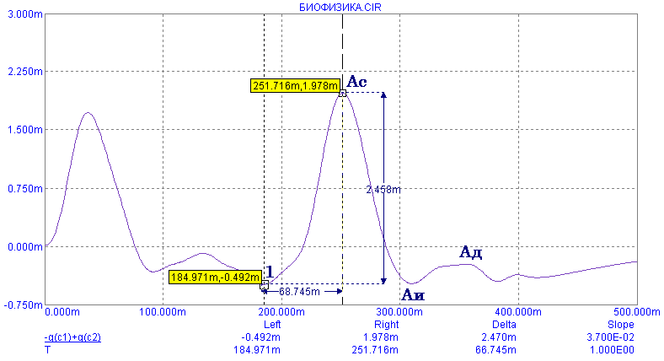 α=0,894с, Ас=1,393·10-3; Аи=1,190·10-3; Ад=0,300·10-3; ДКИ=85,3%; ДСИ=21,5%