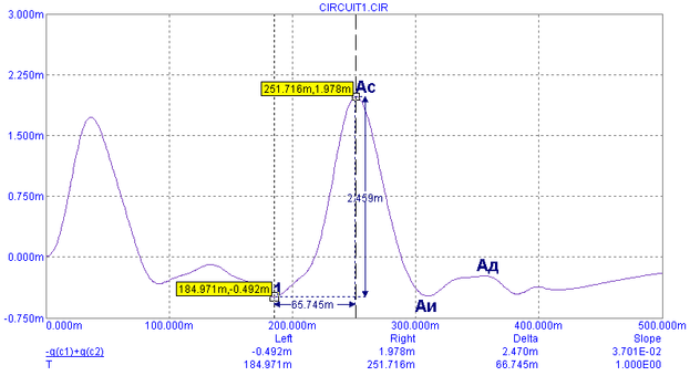 α=0,64с, Ас=348,613·10-6; Аи=19,500·10-6; Ад=42,892·10-3; ДКИ=5,6%; ДСИ=12,3%