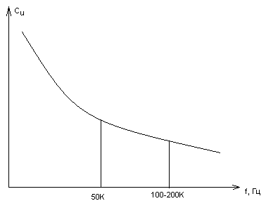 рис. 2 При увеличении частоты тока поляризационная емкость уменьшается.