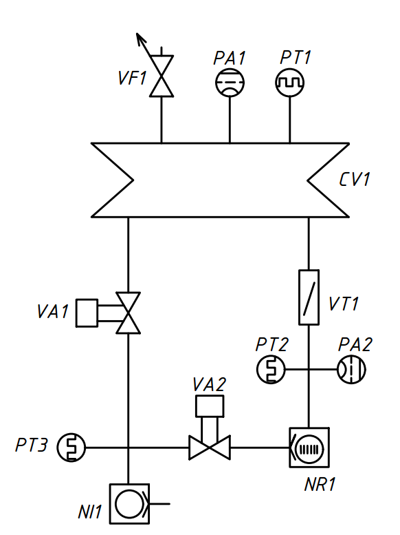 | VA | Клапан | 2 | Электропневматический Модель PV25PK (компании Edwards), D=25 мм |