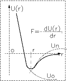 При малых расстояниях преобладает сила отталкивания, и Fотталк>0, при больших r преобладает сила притяжения, и Fотталк<0. Общую энергию можно представить в виде: