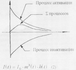 процент отключения каналов рассматривается как некоторое событие, которое следует за процессом активации каналов (детали которого еще не ясны), т.е. считается, что протекает следующая химическая реакция