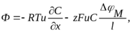 Рассматривается мембрана. Вещество считается заряженным. Рассматривается поток вещества через мембрану. Он определяется уравнением Нернста-Планка. Перепишем уравнение следующим образом: