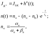 n - доля открытых калиевых каналов - кинетические постоянные скоростей процессов активации и инактивации.