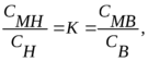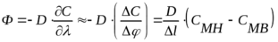 СМН и СМВ – концентрации вещества внутри мембраны у её границ, которые определяются концентрацией вещества в свободном растворе СН, СВ и коэффициентами распределения между мембраной и окружающей жидкой фазой.