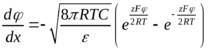 Если рассматривать бинарный симметричный электролит с зарядами одной валентности (NaCl) уравнение (1) имеет решениея: