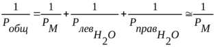 В формуле (6) мы практически пренебрегли тем, что примембранные слои воды также обладают конечной проницаемостью для ионов и, строго говоря, в формуле (6) надо использовать как проницаемость мембраны, так и проницаемость слоёв слева и справа от мембраны: