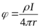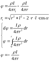 I - токовый униполь, dφ – потенциал, ρ - удельное сопротивление среды, j - плотность тока.