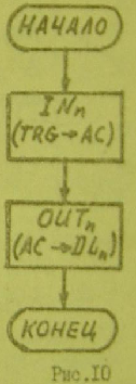 Программа TRG → Mn. Данная программа производит вывод информации, набранной на тумблерном регистре TR6, в ячейке ОЗУ по адресу n. Программа представлена в табл. 5, а ее алгоритм на рис. 8.