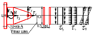 4. Н а п р я ж е н и я в р а с ч е т н о м с е ч е н и и ш в а (в т о ч к е А ):