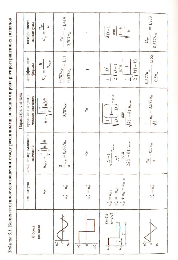 Значения этих коэффициентов для наиболее употребляемых видов сигналов и соотношения между ними даны в табл. 3.1, где все напряжения для упрощения обозначены буквой и.