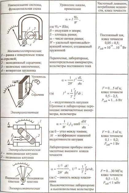 Напряжение и силу тока измеряют приборами непосредственной оценки или приборами, использующими метод сравнения (компенсаторы). По структурному построению приборы, измеряющие напряжение и силу тока, условно можно разделить на три основных типа: