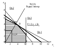 Тогда, очевидно, что для нахождения оптимального решения необходимо выбрать из семейства параллельных прямых, образуемых различными значениями целевой функции, прямую линию, наиболее удаленную от начала координат и имеющую с областью допустимых решений хотя бы одну общую точку. Именно этой точке (в нашем случае это точка D) соответствуют значения