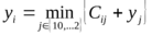 yj – стоимость, отвечающая стратегии минимальных затрат для пути от узла j до стока;