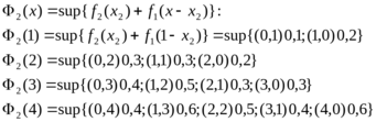 Ф2(x) – наилучшая эффективность, когда x ресурсов выделяют первой и второй задаче (0 ≤ x ≤ bn).