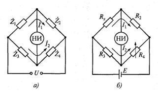 Для измерения параметров элементов цепей методом сравнения применяют мосты. Сравнение измеряемой величины (сопротивления, индуктивности, емкости) с образцовой мерой при помощи моста в процессе измерения осуществляют вручную или автоматически, на постоянном или переменном токе. Мостовые схемы обладают высокой чувствительностью, большой точностью, широким диапазоном измеряемых значений параметров элементов. На основе мостовых методов строят средства измерения, предназначенные как для измерения какой-либо одной величины, так и универсальные аналоговые и цифровые приборы.