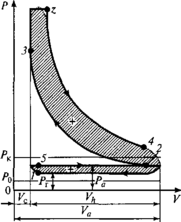 После заполнения цилиндра воздухом начинается процесс сжатия, который на индикаторной диаграмме изображен кривой 2— 3.